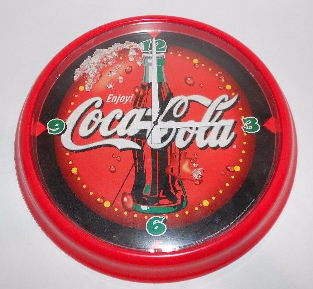 Title (ebay affiliate link): Vintage Large Round Plastic Coca-Cola Ice Cold Bottle Wall Clock Battery 1998