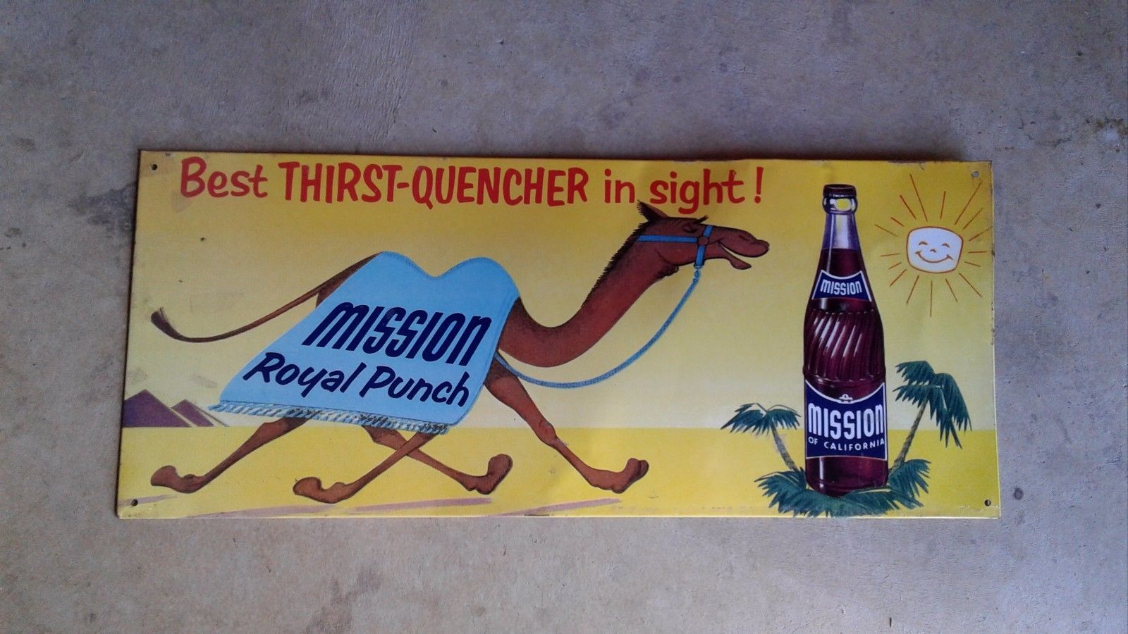 Title (ebay affiliate link): MISSION Royal Punch Metal SIGN Soda Pop CALIFORNIA Drink Fountain SUN THIRST