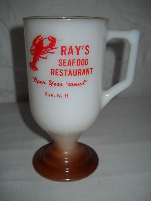 VINTAGE MILK GLASS MUG - RAY'S SEAFOOD - RYE NH