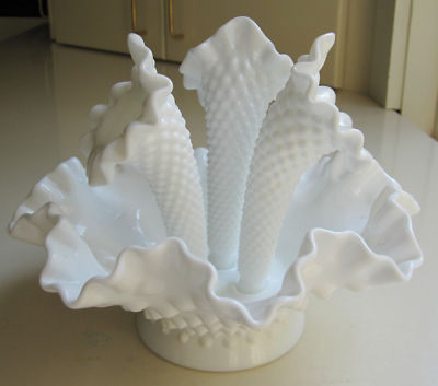 Fenton Milk Glass Hobnail Triple Horn Small Epergne