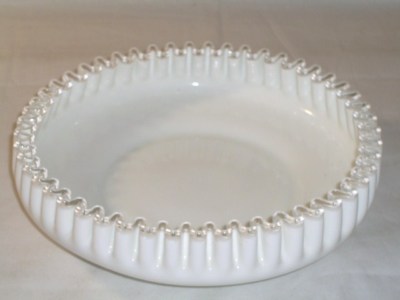 VINTAGE FENTON WHITE RIBBON MILK GLASS CONSOLE BOWL