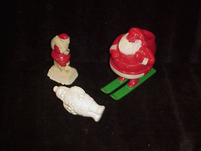 3 VINTAGE SANTA FIGURES PLASTIC MILK GLASS & SALT
