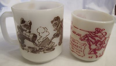 Vintage Davy Crockett Milk Glass Mug & Smokey Bear Mug