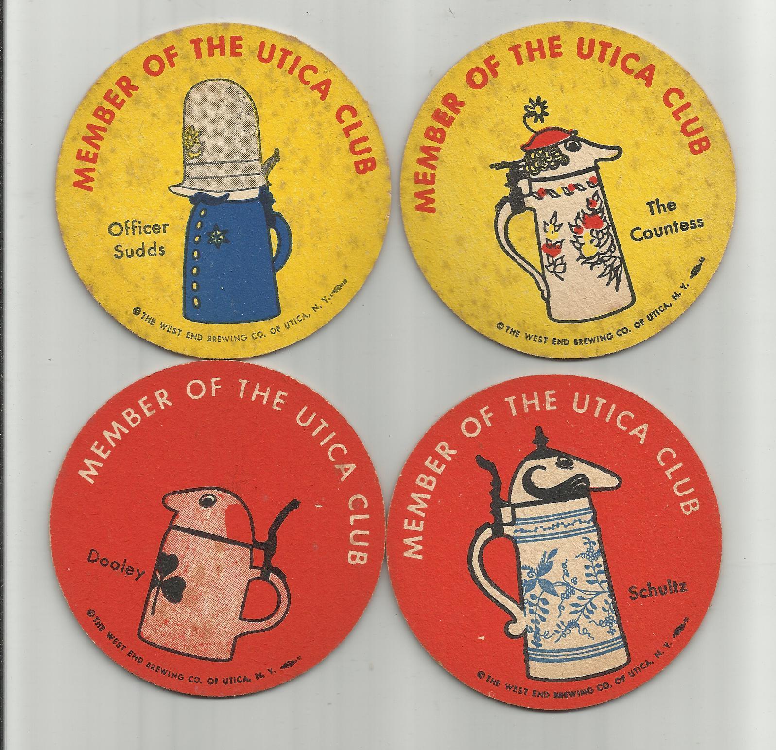 Set Of 4 1960's Utica Club Beer & Ale Coasters- Utica,NY "27,27,33, &34