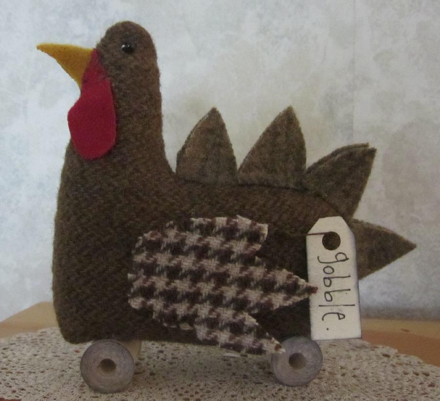 Title (ebay affiliate link): PRIMITIVE WOOL THANKSGIVING TURKEY BIRD MAKE DO SPOOL SHELF SITTER PFATT