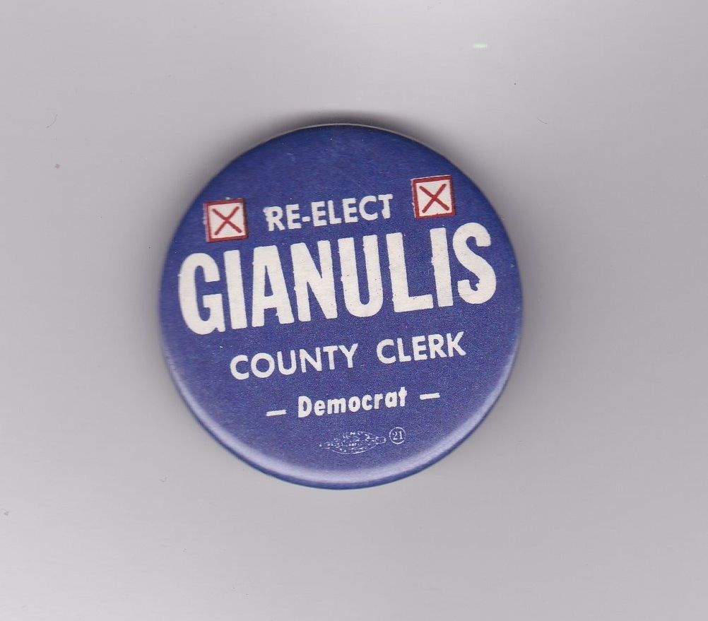 Title (ebay affiliate link): 1980s John Gianulis Rock Island Illinois County Clerk, Democrat pinback, 1 3/4"