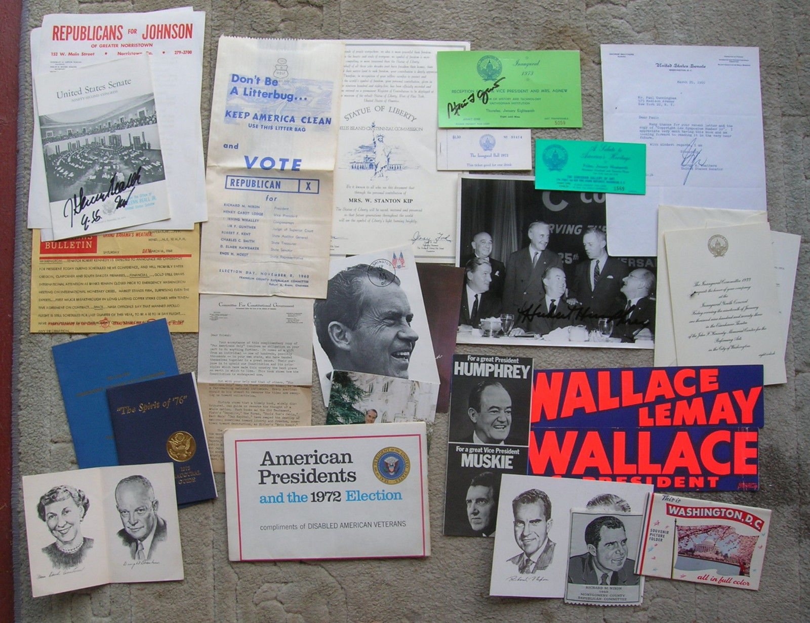 Title (ebay affiliate link): JERRY FORD, HUBERT HUMPHREY AUTOGRAPHS+ 24 PIECES OF VINTAGE POLITICAL EMPHEMERA