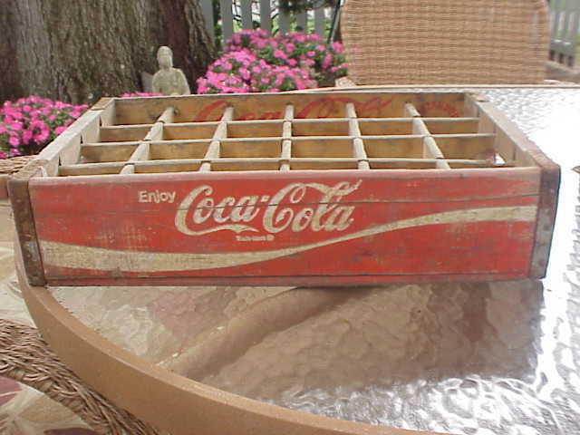 Title (ebay affiliate link): VINTAGE RED COCA COLA 24 BOTTLE WOODEN CRATE, CARRIER DATED 1970