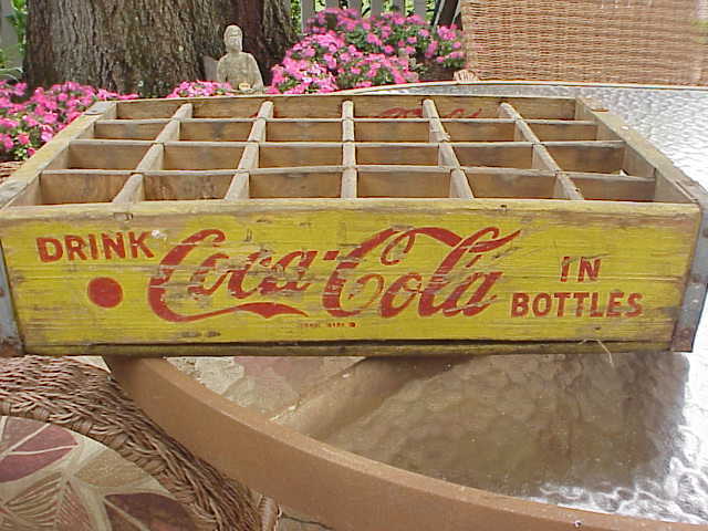 Title (ebay affiliate link): VINTAGE YELLOW COCA COLA 24 BOTTLE WOODEN CRATE, CARRIER DATED 1958