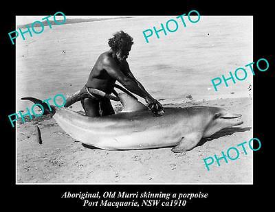 OLD LARGE HISTORIC PHOTO OF ABORIGINAL MAN SKINNING DOLPHIN ca1910 NSW