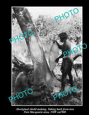 OLD LARGE HISTORIC PHOTO OF NSW ABORIGINAL, MAKING SHIELDS FROM TREES ca1900
