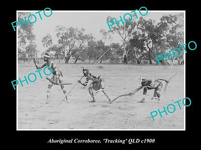 OLD LARGE HISTORIC PHOTO OF ABORIGINAL CORROBOREE DANCE, 'TRACKING' QLD c1900