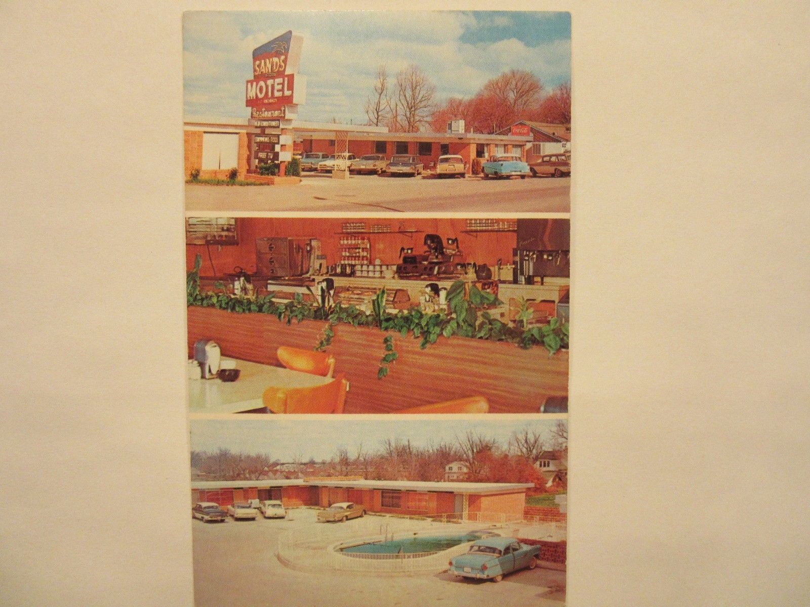 Title (ebay affiliate link): 1957 Pontiac, 1955 Ford SANDS MOTEL and RESTAURANT in the Ozarks, Rogers, AR