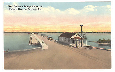Vintage Florida Postcard. New Concrete Bridge Across Halifax River, Daytona.