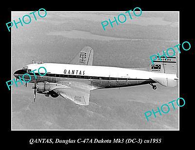 OLD LARGE HISTORIC PHOTO OF QANTAS AIRLINES DOUGLAS DC-3 ca 1955
