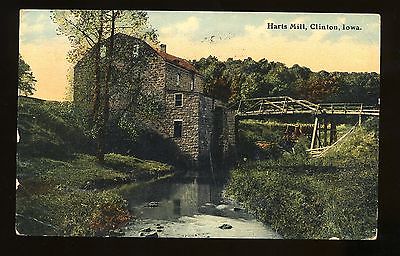 IOWA postcard ~ Harts Mill Clinton Ia. historic stone building old bridge 1911