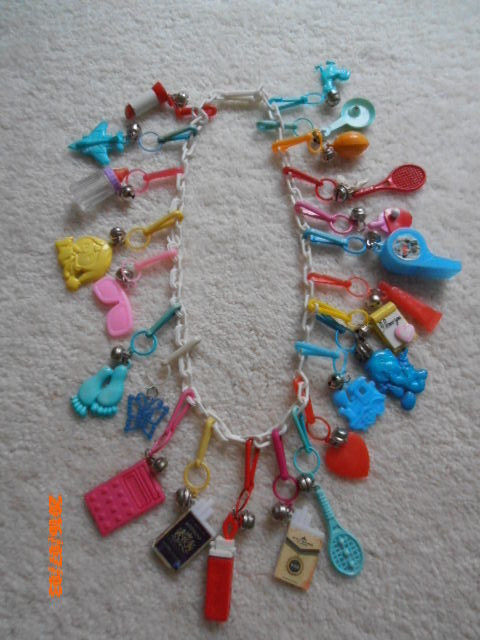 Title (ebay affiliate link): 1980'S BELL CLIP PLASTIC CHARM NECKLACE WITH 23 RETRO 80'S CHARMS!!