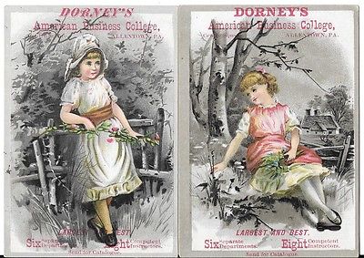 (2) Trade Card Dornets American Business College ALLENTOWN PA Young Lady