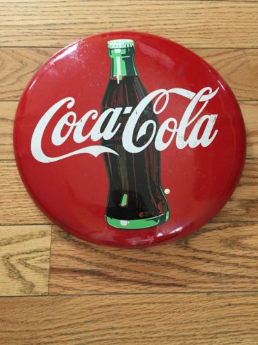 Title (ebay affiliate link): Coca Cola Round Button Advertising Sign Coke 1990 Coca-Cola Company Soda Ad