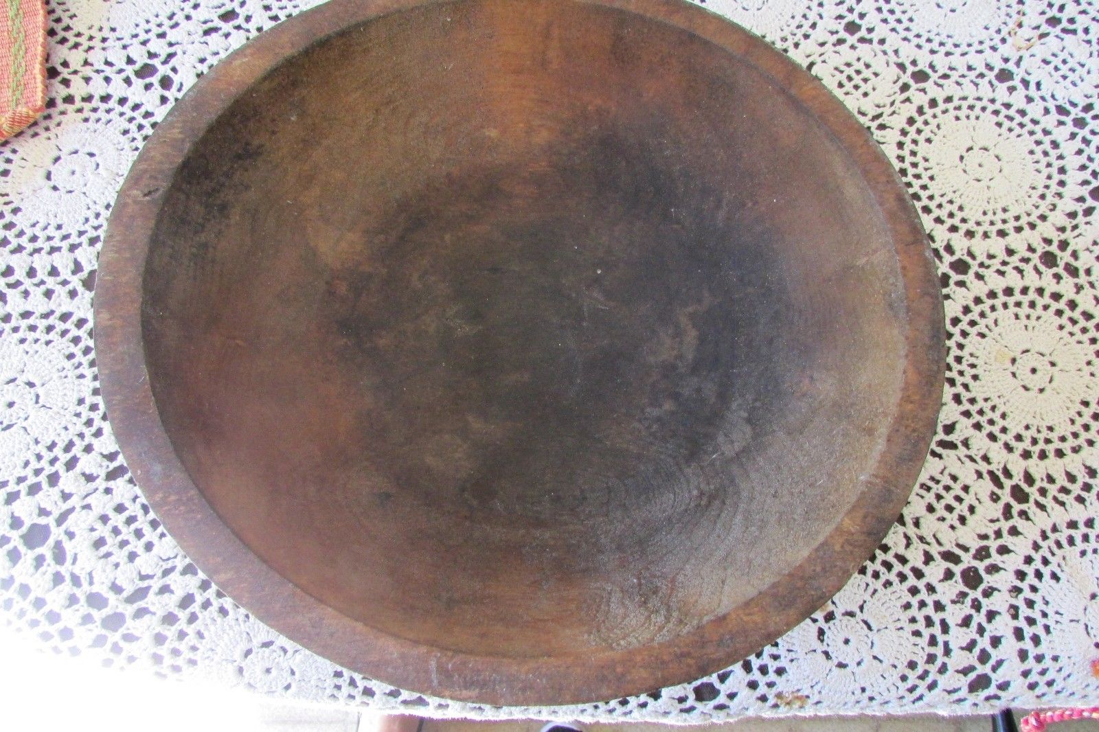 Title (ebay affiliate link): ESTATE PRIMITIVE ANTIQUE VINTAGE WOOD DOUGH BOWL 11.5" DARK PATINA 5/8" RIM