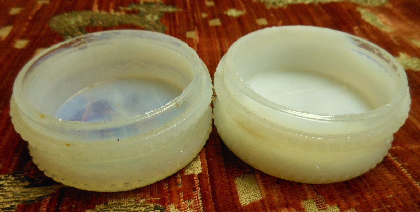 Title (ebay affiliate link): 2 Rare 19th Century Flint Sandwich Glass Clambroth Cosmetic Jars