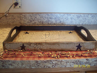 PRIMITIVE CRACKLE BLACK STAR WOOD SERVING TRAY COUNTRY FARMHOUSE DECOR