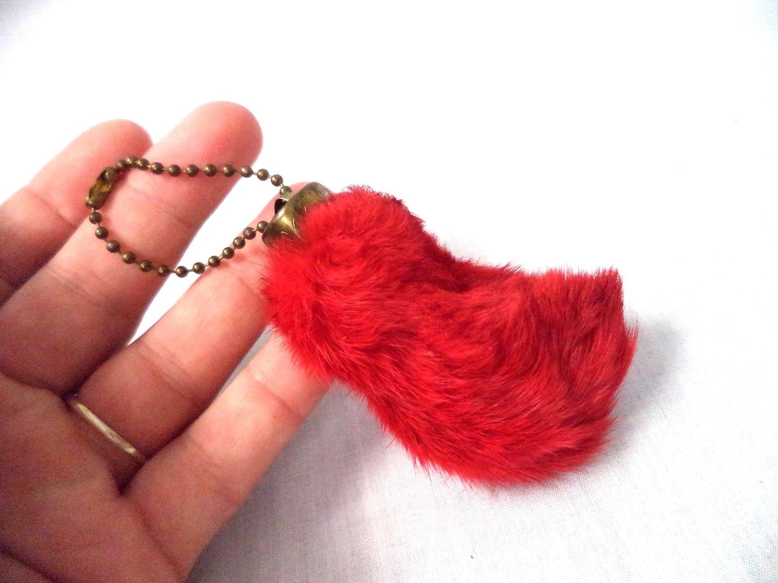 Title (ebay affiliate link): STUNNING VINTAGE ESTATE SIGNED LUCKY USA CHARM RED RABBIT FOOT KEYCHAIN!!! G3521