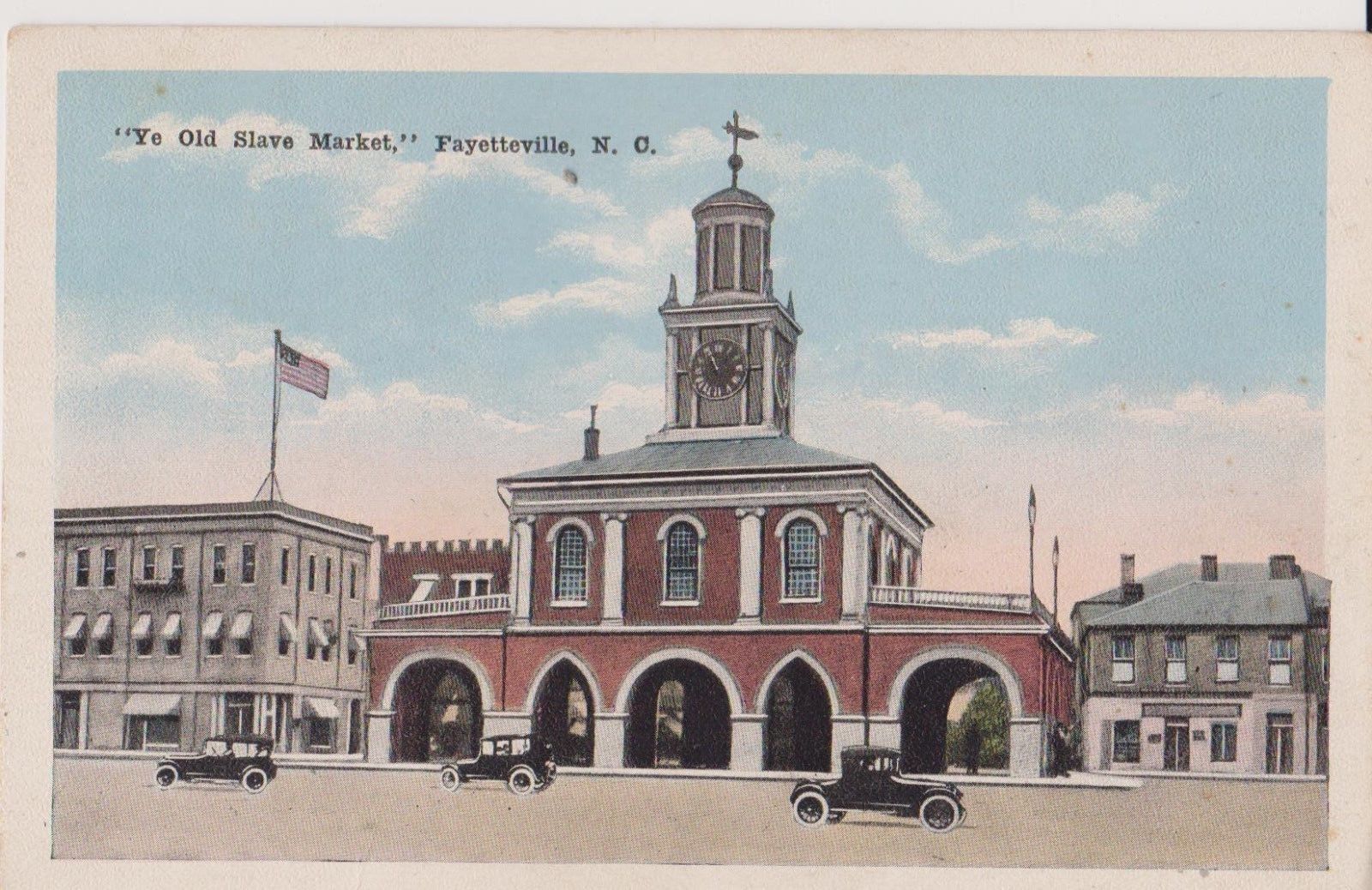Title (ebay affiliate link): Vintage Postcard Ye Old Slave Market Fayetteville N.C. old cars