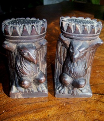 Pr antique carved eagle - griffin furniture finials 4"