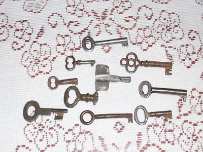 Set of 10 Antique Skeleton Keys 4 furniture locks curio