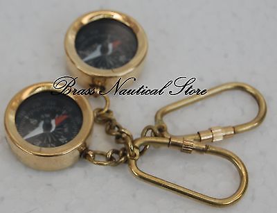 Vintage Style Antique nautical Brass Compass Key Chain Gift 2 Key Ring Compass