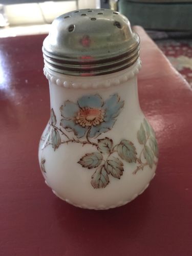 VINTAGE MILK GLASS DECORATED SUGAR SHAKER