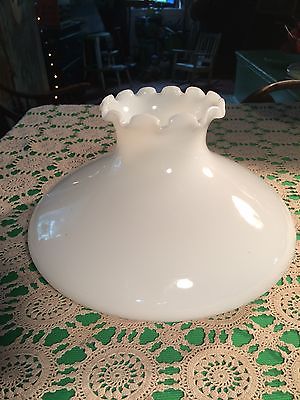 Tam-O-Shanter White Milk Glass Lamp Shade Globe Kerosene Oil Crimped Top ~ Nice!