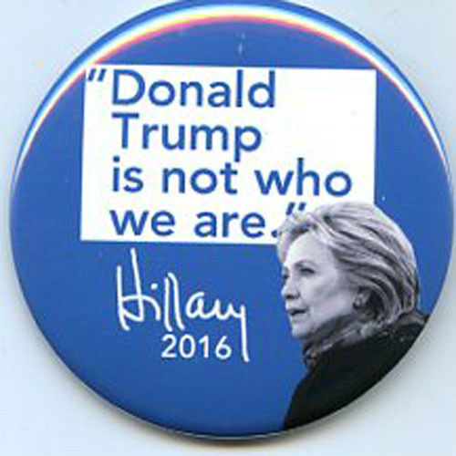 Donald Trump is not who we are Hillary Clinton 2016 button