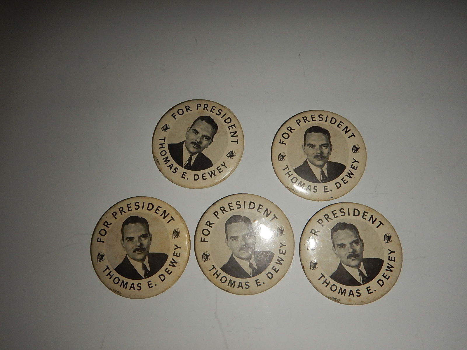 Five old Thomas E. Dewey for President 2 1/2 inch pins celluloid old estate