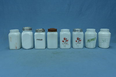 Vintage MIXED LOT of 8 WHITE MILK GLASS STOVE TOP SALT PEPPER SUGAR SHAKERS OLD