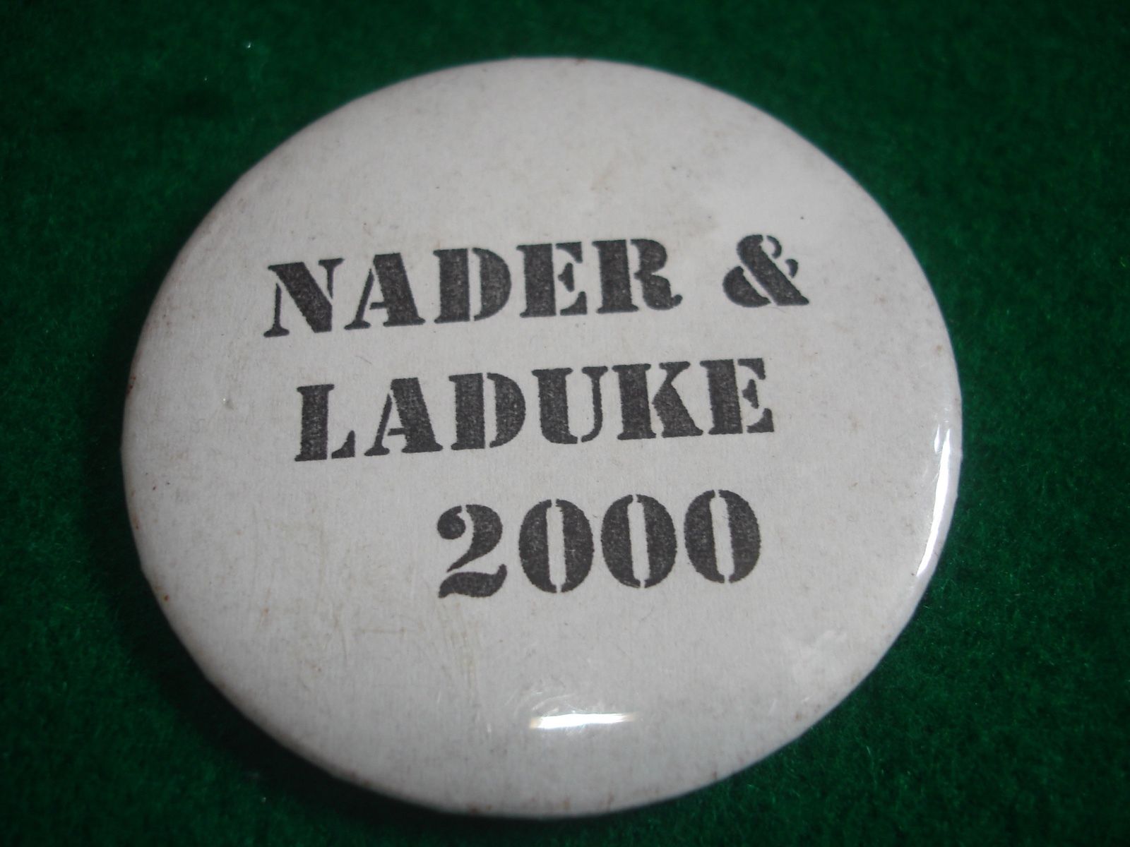 Title (ebay affiliate link): VINTAGE PIN / PINBACK / BUTTON - NADER & LADUKE 2000 - 2.5"