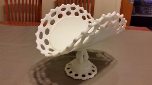 Title (ebay affiliate link): Vintage Westmoreland White Milk Glass Pedestal Banana Boat Stand Doric Lace