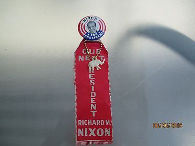 Title (ebay affiliate link): Vintage 1968 Nixon Presidential Campaign Photo Button Ribbon and Charm
