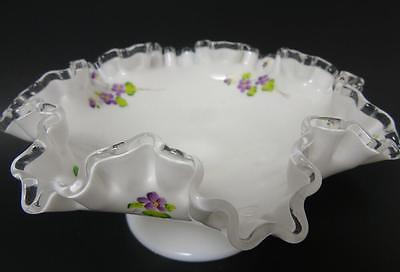 VINTAGE FENTON MILKGLASS SILVER CREST VIOLETS IN SNOW COMPOTE HP BY J. MCMULLEN