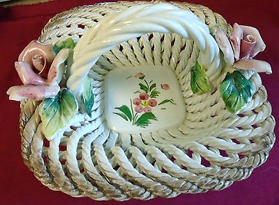 Title (ebay affiliate link): VINTAGE CAPODIMONTE HAND PAINTED WOVEN ROSES SQUARE HANDLED BASKET