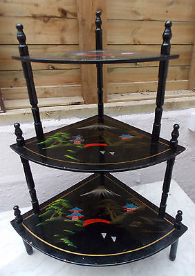 3 Tier Shelf Black Lacquer What Not Vintage Eastern Oriental Pagoda Design
