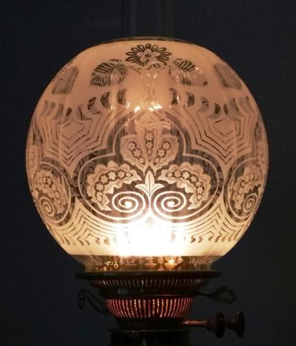 Title (ebay affiliate link): Victorian Art Nouveau Etched Glass Kerosene Oil Lamp Ball Shade Melon Optic