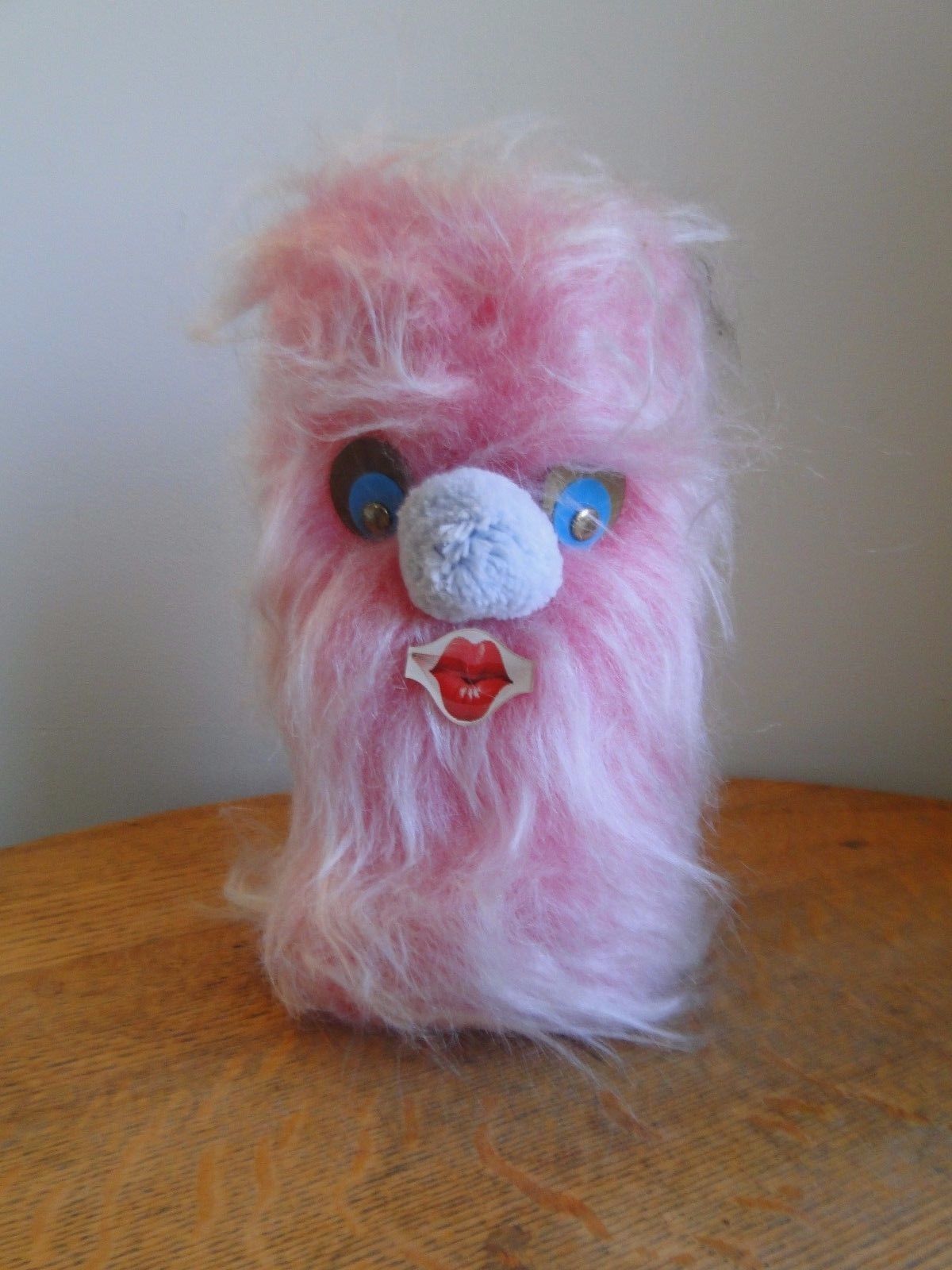 Title (ebay affiliate link): Long Faux Fur Pink Handmade Monster Dude "3D" Kissing Lips Vintage Mod Hippie