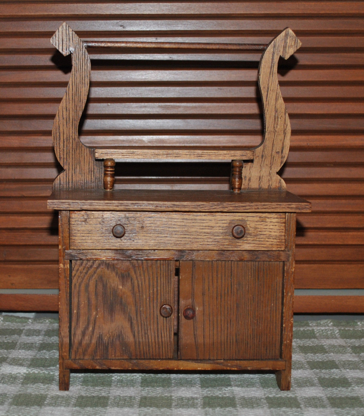 Title (ebay affiliate link): ANTIQUE OAK CHILD OR DOLL WASHSTAND FURNITURE WITH SHELF