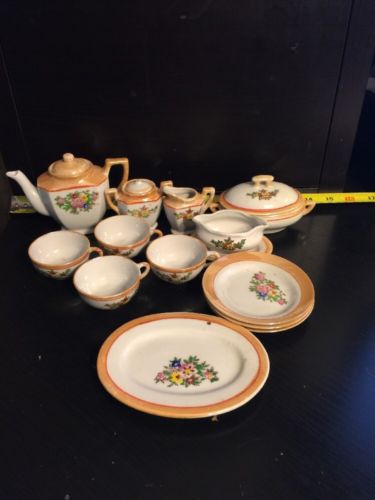 Title (ebay affiliate link): Vintage Miniature Tea Set White and Tan with Flowers Made in Japan 16 Pieces