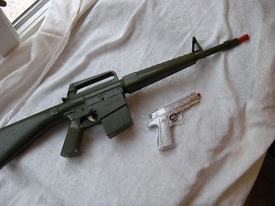 Title (ebay affiliate link): LOT OF 2 Vintage 1965-70s Empire Plastics Toy M-16 Rifle & Vintage Toy Pistol