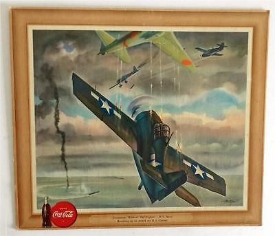 VINTAGE 1943 COCA-COLA WWII AIR COMBAT ADVERTISING WALL HANGER SIGN F4F WILDCAT