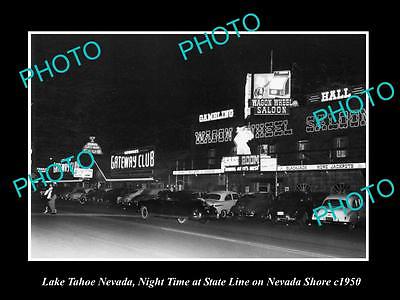 OLD LARGE HISTORIC PHOTO OF LAKE TAHOE NEVADA, GATEWAY CLUB & W/W SALOON c1950