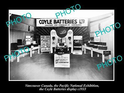 OLD HISTORIC PHOTO OF CANADA INDUSTY, VANCOUVER, COYLE BATTERIES DISPLAY c1933